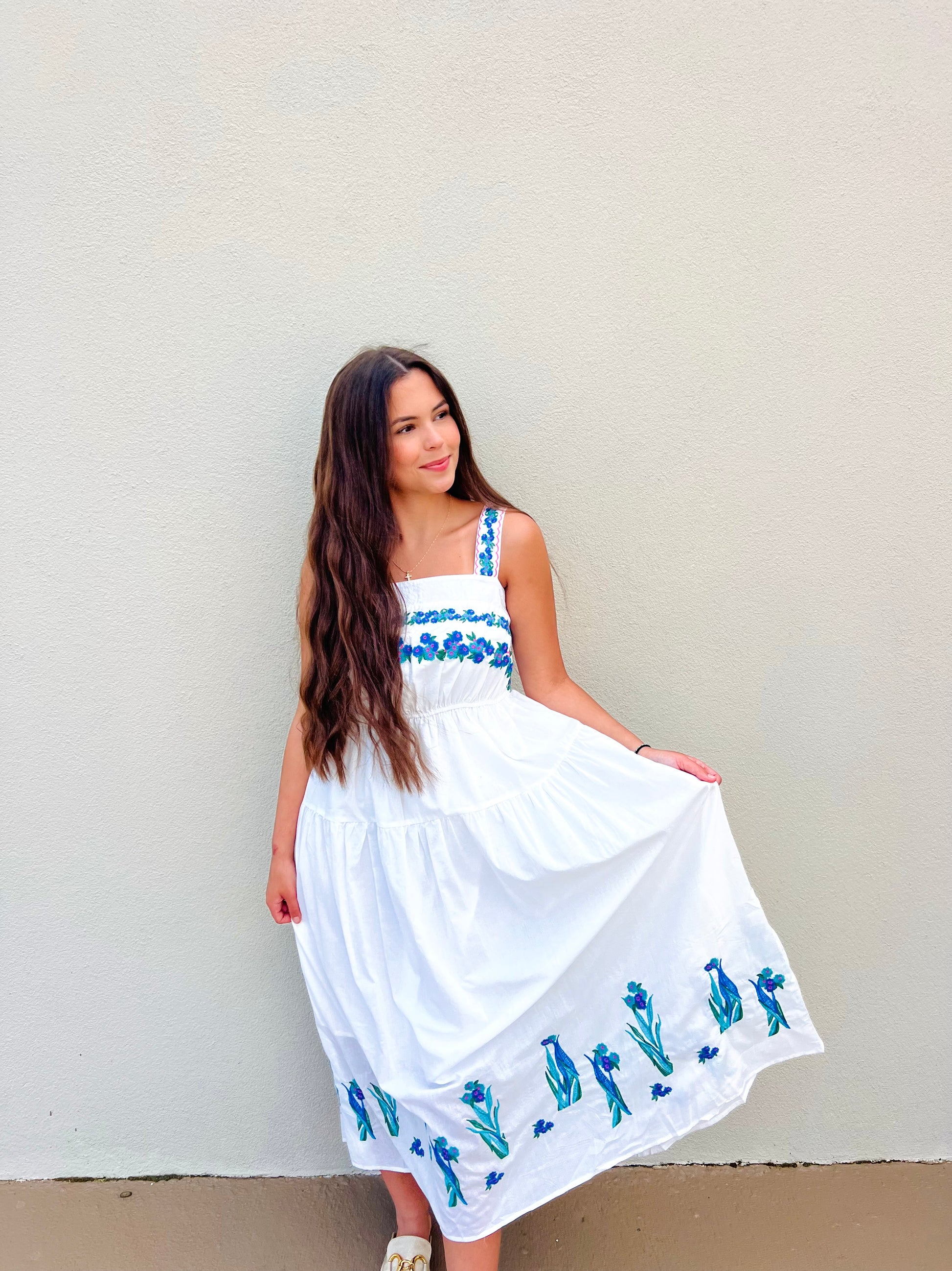 How gorgeous is this botanical embroidered midi dress?! It is everything you need for Spring! It comes in a gorgeous off-white color and is embroidered with spring florals. It features a square neckline, an accentuating waist-line, and a flowy bottom.