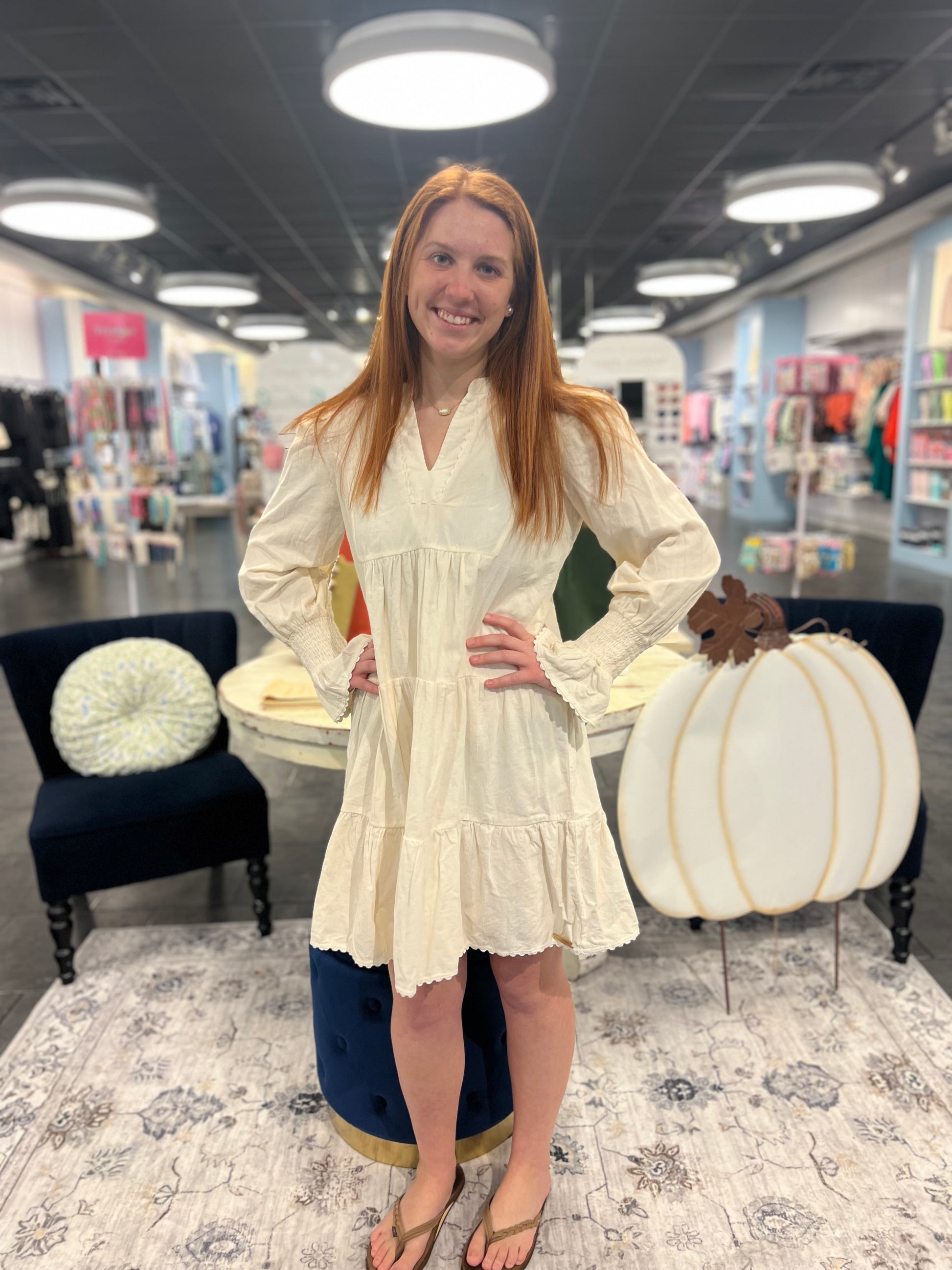 Indulge in the cozy comfort of The Corduroy Dream dress, available in cream or blue. Made with soft corduroy fabric, this long sleeve dress features a unique cuff at the bottom of the sleeve and delicate scalloped detailing. Elevate your style and stay warm in this must-have dress.