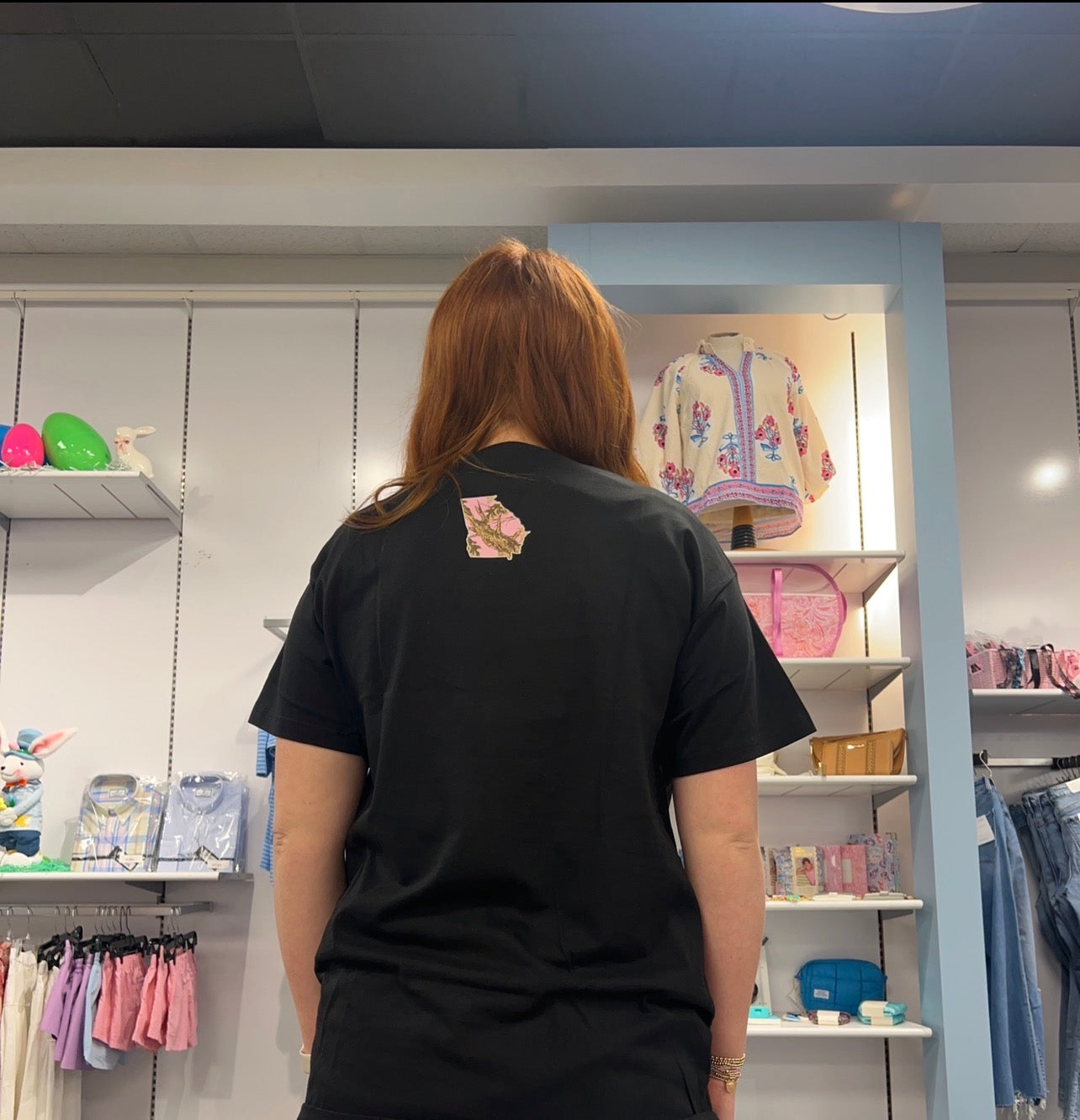 Step out in style and showcase your Georgia pride with The Peach State Camo Tee! This striking black tee features the state of Georgia adorned in vibrant pink camo, accented with delicate lace and a charming pink bow. With a stylish camo design on the back, it’s a perfect blend of comfort and flair for every fan! Feel the enthusiasm of the South with every wear!
