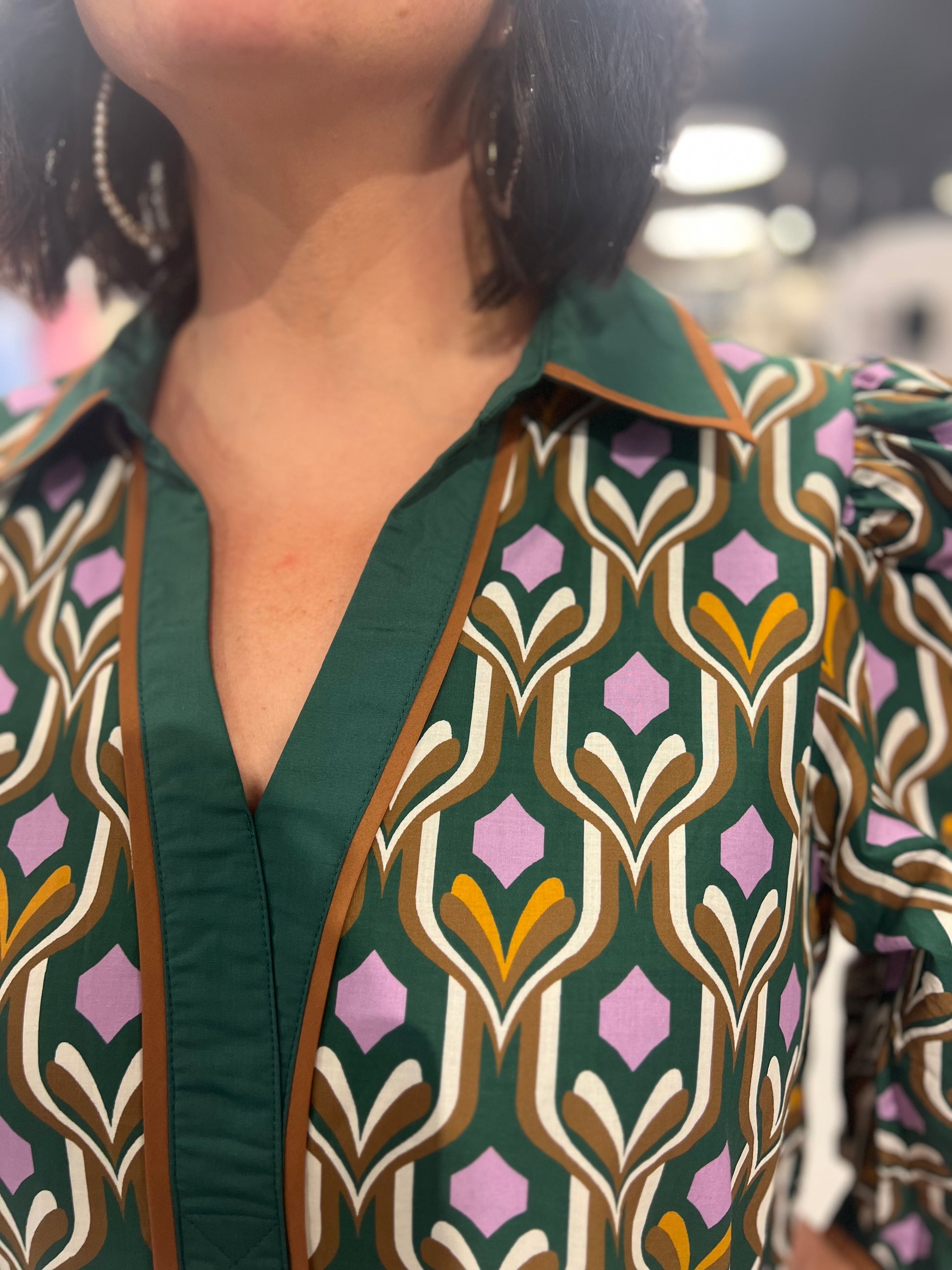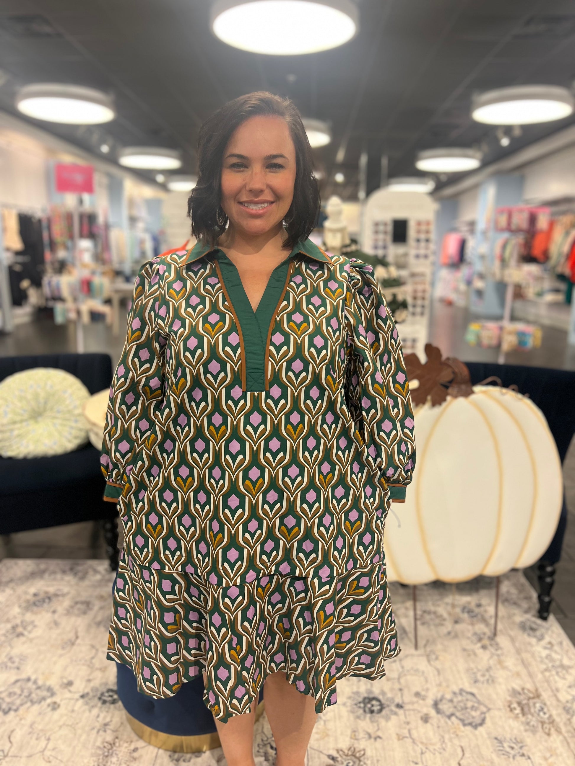 "Make a statement with the Pixel Parade dress! Designed with a v-neck and trimmed collar, this three quarter length sleeve dress is the perfect combination of style and comfort. Turn heads and feel confident in this flattering tan dress."
