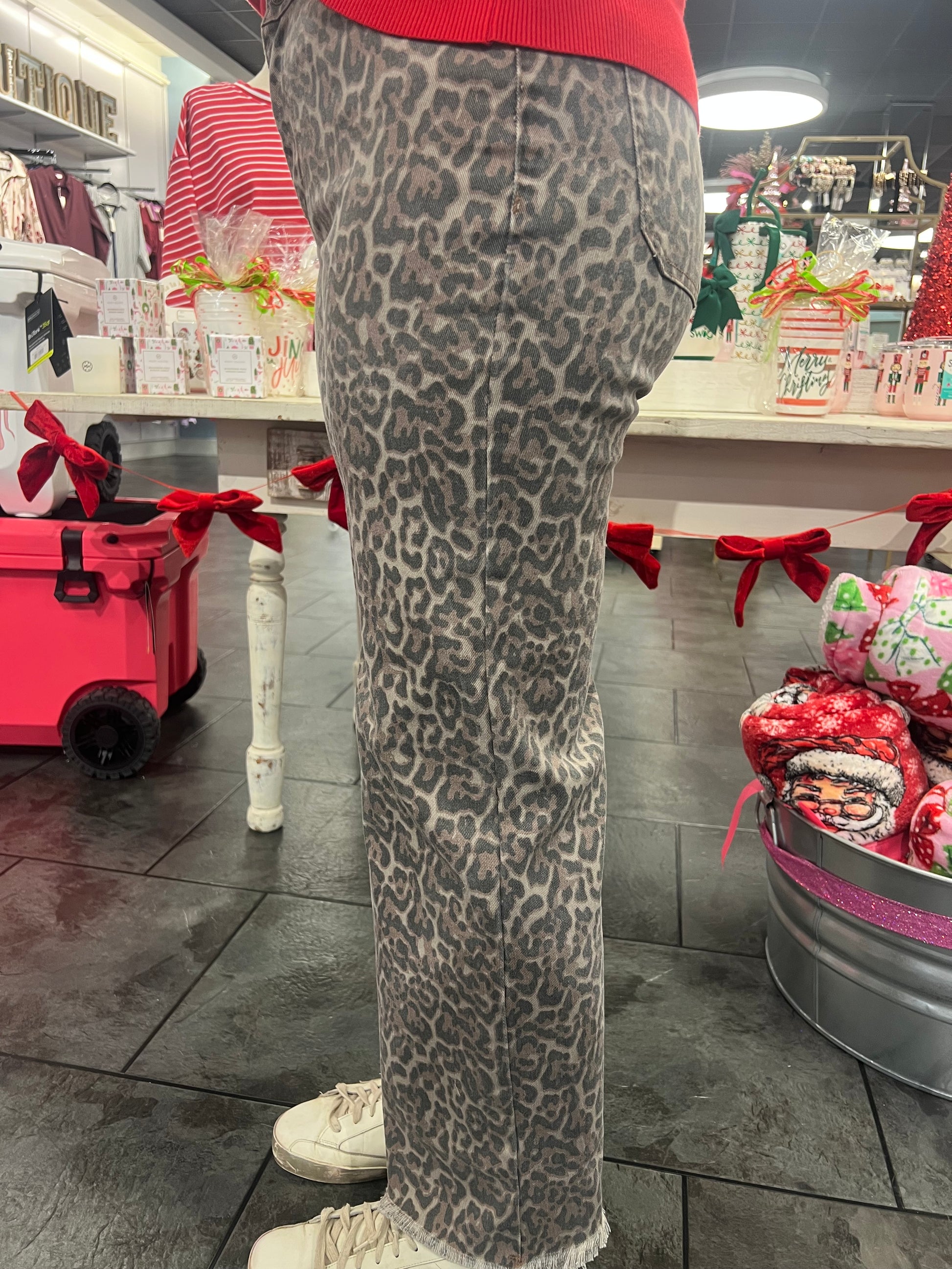 Step into wild fashion with our Wild Thing Jeans! Featuring leopard frayed legs, a wide leg fit, and a button and zipper closure, these jeans are not only stylish but also comfortable. Pair them with a cute top for the perfect look. Be fierce and make a statement with our Wild Thing Jeans.